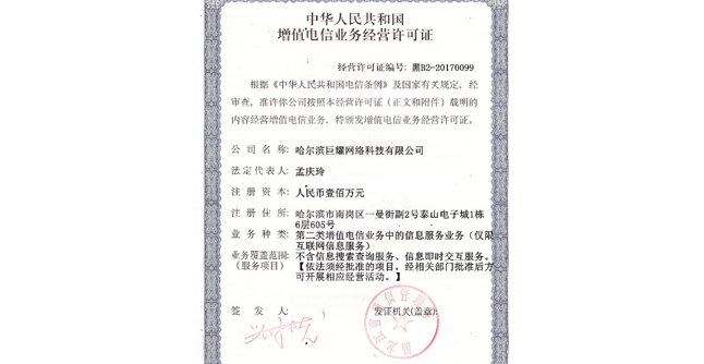 哈爾濱巨耀網絡科技有限公司·版權所有 | 地址:哈爾濱市南崗區西大直街118號哈特大廈17層 |